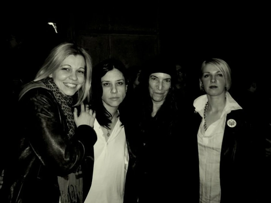 Kultna američka rok muzičarka i pesnikinja Peti Smit pojavila se preksinoć na otvaranju izložbe beogradske umetnice Simonide Rajčević "Dark Star/Tamna zvezda" u galeriji "Zvono".