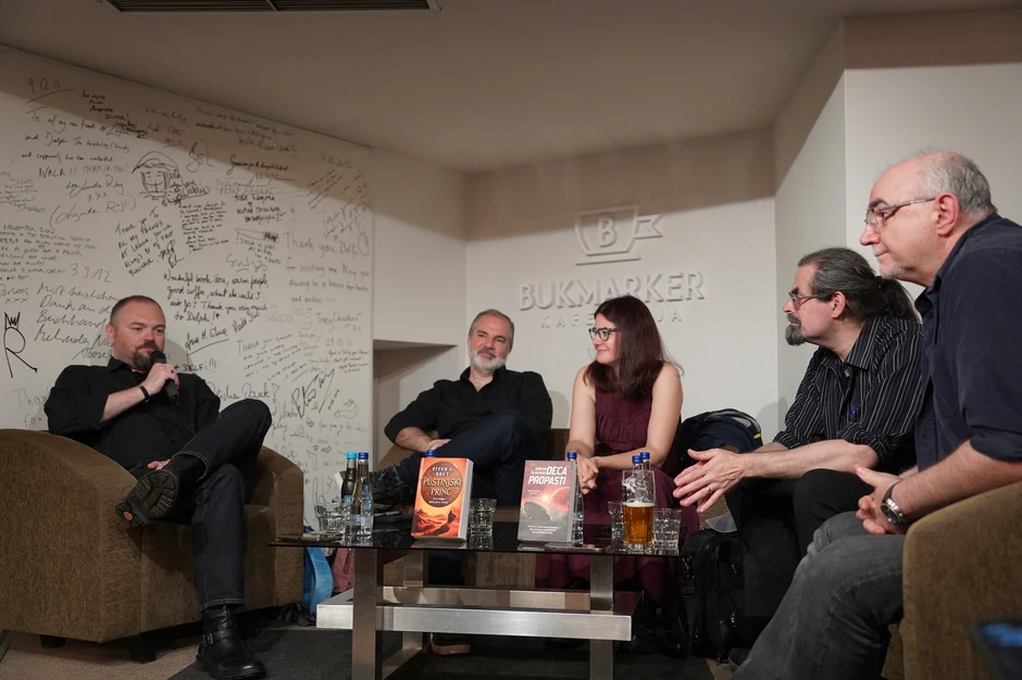 Nakon učešća na Festivalu fantastike u Nišu, poznati svetski pisci Piter V. Bret i Adrijan Čajkovski bili su gosti "Lagune" te su se 15. maja sreli sa svojim čitaocima u Beogradu u knjižari Delfi SKC.
