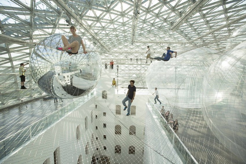 Površina ove prostorne instalacije, po kojoj se može slobodno kretati, iznosi čak 2.500 kvadratnih metara po kojima je raspoređeno nekoliko sfera od pvc-a, prečnika do 8.5 metara.