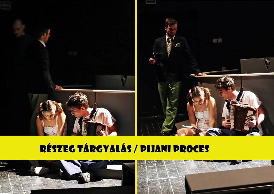 "Pijani proces" Bernara Mari Koltesa u režiji Roberta Lenarda premijerno će biti izveden 27. marta na sceni Novosadskog pozorišta/Ujvideki sinhaz. od 19 sati. Tekst je inspirisan "Zločinom i kaznom" Dostojevskog.
