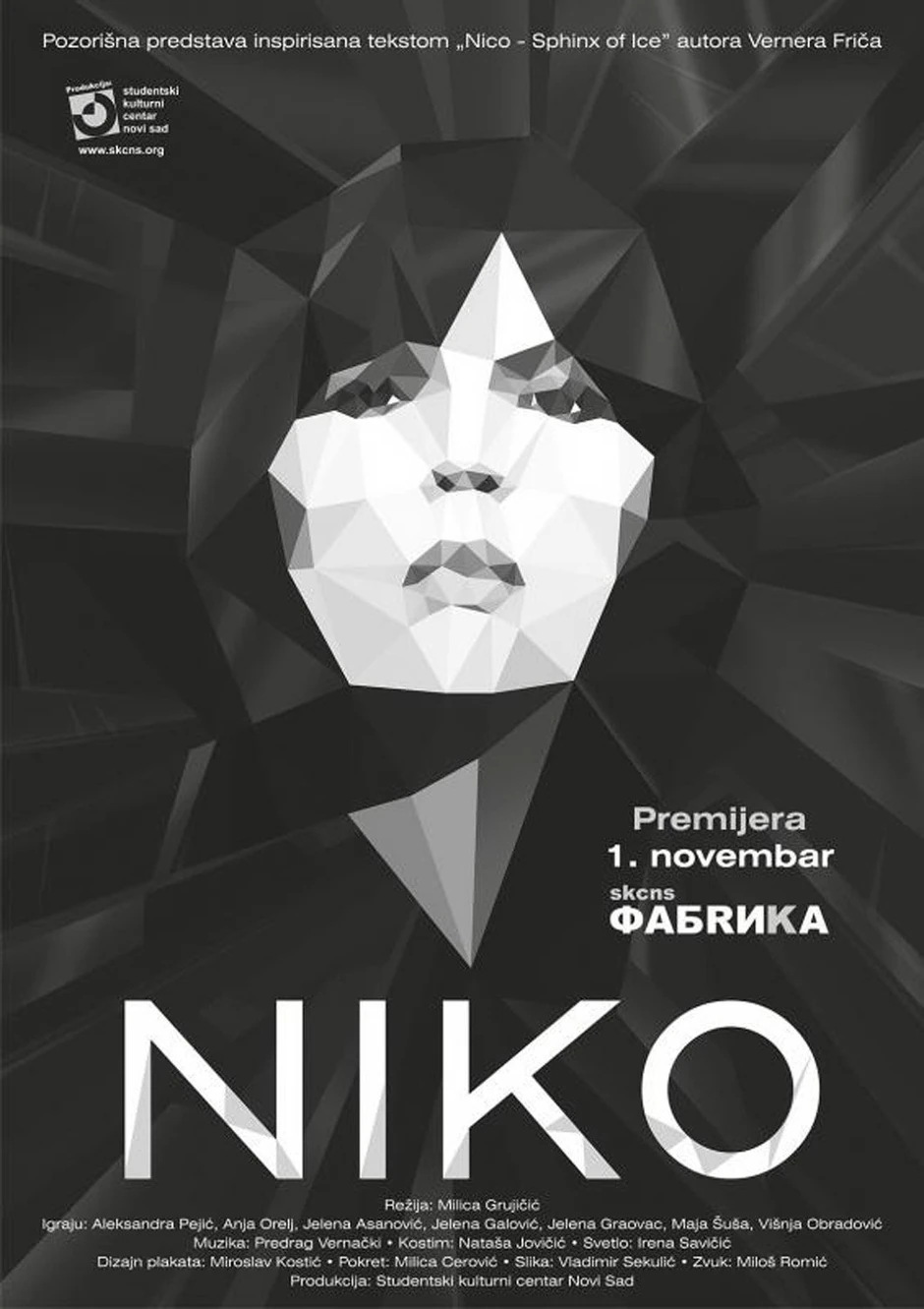 Sutra (20) u Mikseru gostuje Studentski kulturni centar Novi Sad – fabrika sa predstavom “Niko – ledena Sfinga” Vernera Friča, u režiji Milice Grujičić.
