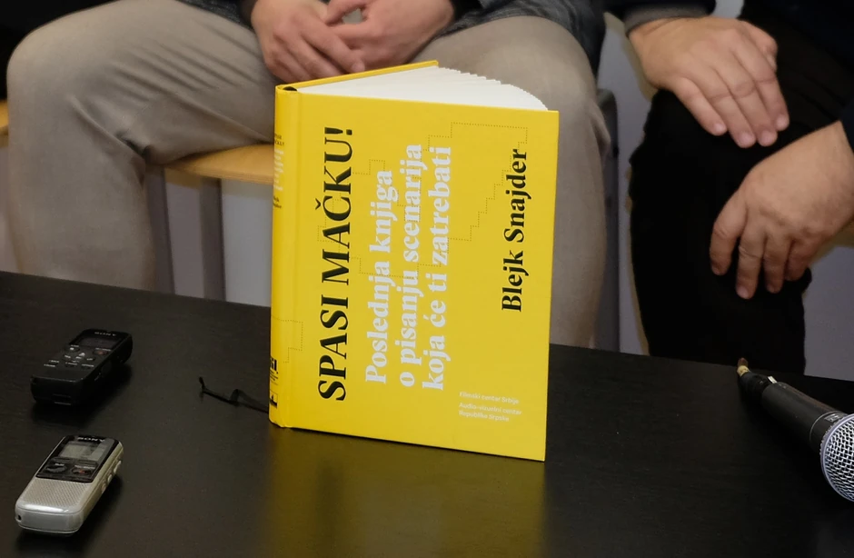 Promocija knjige “Spasi mačku” scenariste Blejka Snajdera, u izdanju Filmskog centra Srbije i Audio-vizuelnog centra Republike Srpske, održana je sinoć u Artget Galeriji Kulturnog centra Beograda.