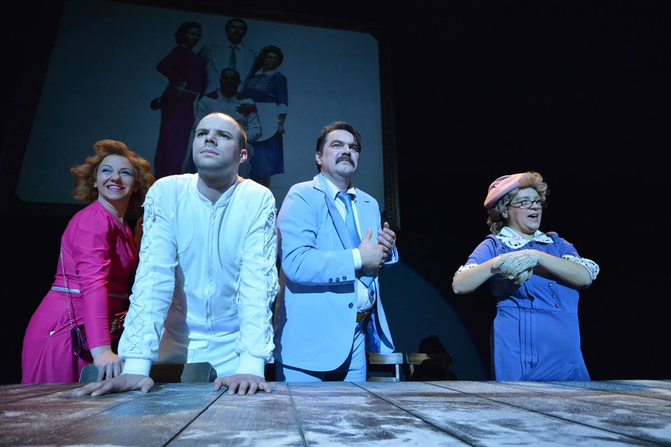 U predstavi igra brojna glumaccka ekipa zrenjaninskog teatra, kostimograf je Dragica Laušević, scenograf Vesna Popović, muziku je komponovala Irena Popović Dragović, autor video radova je Dušan Udicki, a scenski pokret oblikovao je Dejan Karlečik.