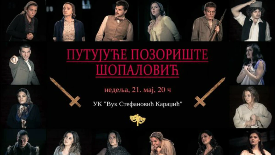 Predstava ,,Putujuće pozorište Šopalović” premijerno će biti izvedena u nedelju u 20 sati u Ustanovi kulture Vuk Stefanović Karadžić. Cena ulaznice je 200 dinara a sav novac od igranja će biti doniran humanitarnoj fondaciji ,,Podrži život”.