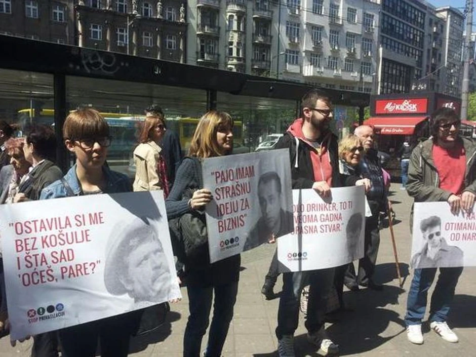 Ispred zgrade Agencije za privatizaciju traje protest filmskih radnika, a studenti umetničkih fakulteta su održali performans.