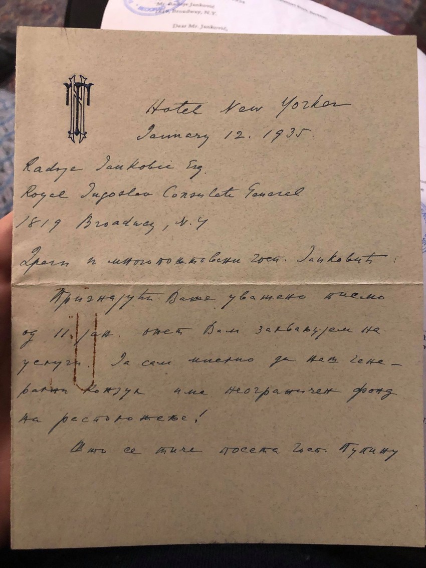 Pronađena su dva do sada izgubljena i u javnosti nikada u potpunosti dostupna pisma Nikole Tesle Radoju Jankoviću, generalnom konzulu Kraljevine Jugoslavije u Njujorku, saopšteno je danas iz "Adligata".