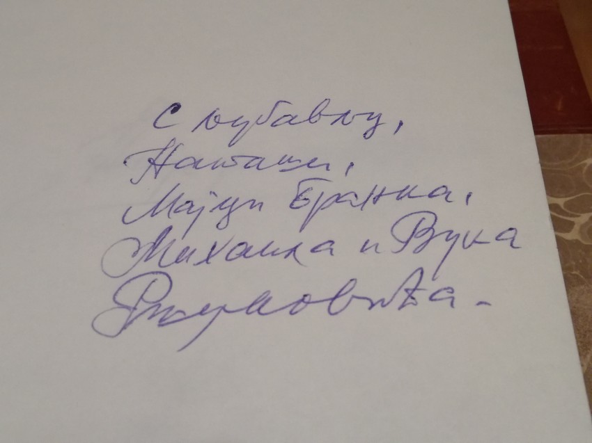 Više od 160 štampanih stranica knjige naš pesnik je sam prepisao na preko dve stotine strana u znak ljubavi i poštovanja prema "Adligatu" čiji je jedan od osnivača. Knjigu je posvetio Laziću, "pravom pobedniku u teškoj borbi za odbranu knjige".