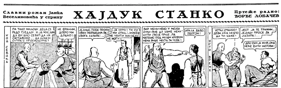 - Posle prethodnika Brane Cvetkovića početkom 20. veka, pa "stripske revolucije" koja je izvedena u "Politici" 20. oktobra 1934. štampanjem "Tajnog Agenta X-9" scenarista Dešajela Hemeta i crtača Aleksa Rejmonda, lokalna stripomanija je na samom početku 1935. iznedrila stripare Momčila - Momu Markovića, Vlastimira - Vlastu Belkića i druge. Uporedo s njima, a potom i sa Đorđem - Đukom Jankovićem, Veljkom Kockarem, Draganom Kalmarevićem, budućim filmskim režiserom Žikom Mitrovićem, Sebastijanom Lehnerom i vaskolikim "lokalcima", u beogradskim stripskim časopisima "Strip" (urednik Vojin M. Đorđević, april 1935), "Crtani film" (urednik Ivan Zrnić, april 1935), "Mika Miš", "Mikijevo carstvo" i još mnogima, objavljivali su i ovi srpski stripari ruskog porekla: Đorđe Lobačev, Sergej Solovjev, Konstantin Kuznjecov, Aleksije Ranhner, Nikola Navojev, Vsevolod Guljevič, Ivan Šenšin, Nikolaj Tišćenko, Vladimir Žedrinski... - navodi Ivkov.