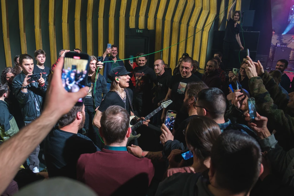 Velikan koji je, pre fokusiranja na instrumentalnu solo karijeru, sarađivao sa imenima kao što su Frank Zappa, David Lee Roth, Whitesnake, pokazao je, tokom dva sata i 20 minuta svirke, da je u 63. godini furiozno brz na gitari, a fantastičnu podršku mu pružaju bubnjar Jeremy Colson, basista Philip Bynoe i mlađani, u postavi sveži gitarista Dante Frisiello.
