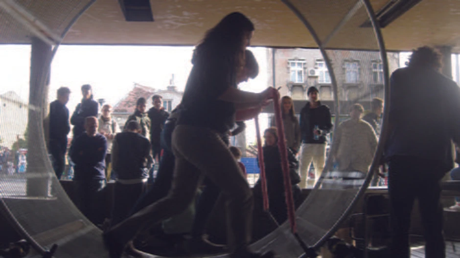 U dnu kružnog stepeništa biće postavljen Točak kantri pevača Dona Vilijamsa, interaktivna zvučna instalacija u kojoj hodanje, čovekov prirodni ritam, analogno pokreće gramofon.