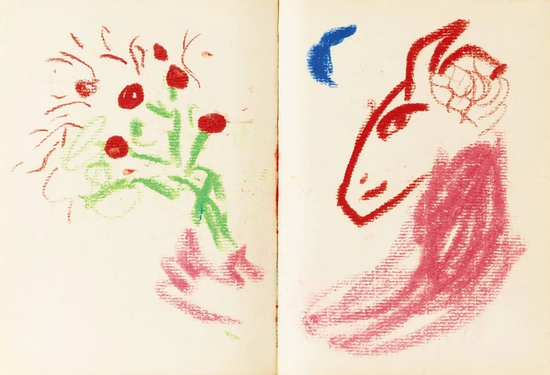 Sveska sa crtežima koja će biti na aukciji u Njujorku, 17. juna, prvobitno je pripadala Beli Šagal. Ona je prvih osam stranica iskoristila za svoj prevod francuske poezije na jevrejski jezik. Šagal je nakon njene smrti koristio svesku za crtanje.