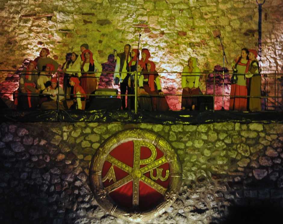 Fanfare, kostimirani vojnici pod svetlom reflektora na sceni Niške tvrđave čekaju ulazak u bitku - spektakularan početak sinoćnjeg izvođenja Verdijeve opere “Trubadur” ansambla Narodnog pozorišta iz Beograda pod dirigentskom palicom Vahtanga Mačavarijanija.