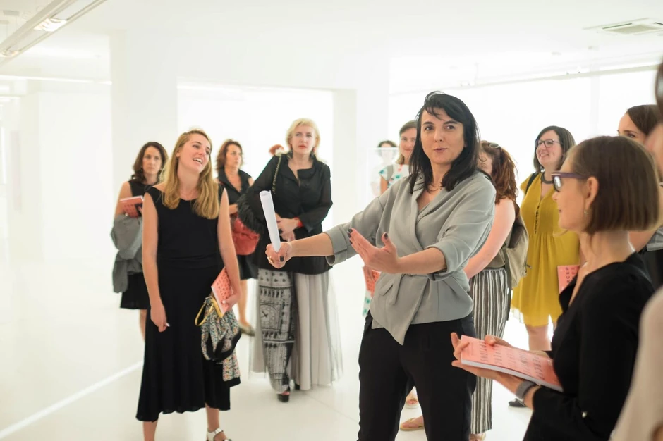 Autorka postavke na Cetinju, "Zašto nema velikih muških umjetnika?’’, Natalija Vujošević je u nadahnutom vođenju kroz izložbu napomenula da svih tridesetak radova koji su prezentirani, kroz bogatsvo umetničkih senzibiliteta obuhvataju raspon od angažovanog promatranja društva, kao i položaja žene do autobiografskih momenata.