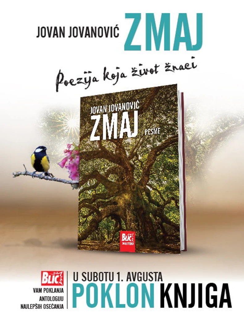 Uz svaki primerak „Blica“ u subotu, 1. avgusta čitaoci će na poklon dobiti knjigu pesama Jove Jovanovića Zmaja . Požurite, pronađite vaš primerak novina i upotpunite vašu kolekciju sa ovom antologijom najlepših osećanja.