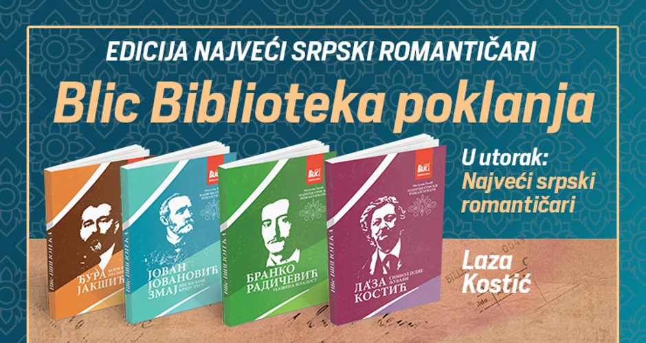 U utorak, 19. marta "Blic" poklanja poslednju knjigu iz edicije o velikim srpskim romantičarima, posvećenu jednoj od najzanimljivijih pesničkih ličnosti druge polovine 19. veka, Lazi Kostiću.