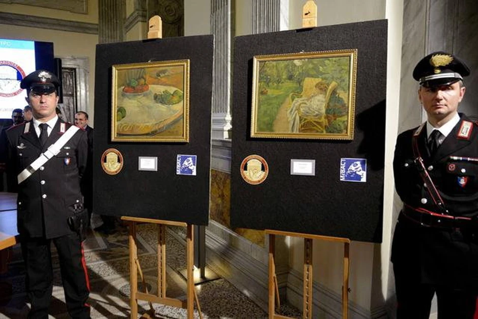 Reč je o delima "Voće na stolu ili mrtva priroda sa malim psom" (Fruits on a table or still life with a small dog), Gogenovo delo za koje se smatra da je vredno između 10 do 30 miliona evra, i "Žena sa dve fotelje" (La femme aux deux fauteuils), Bonarova slika vrednosti oko 600.000 evra.