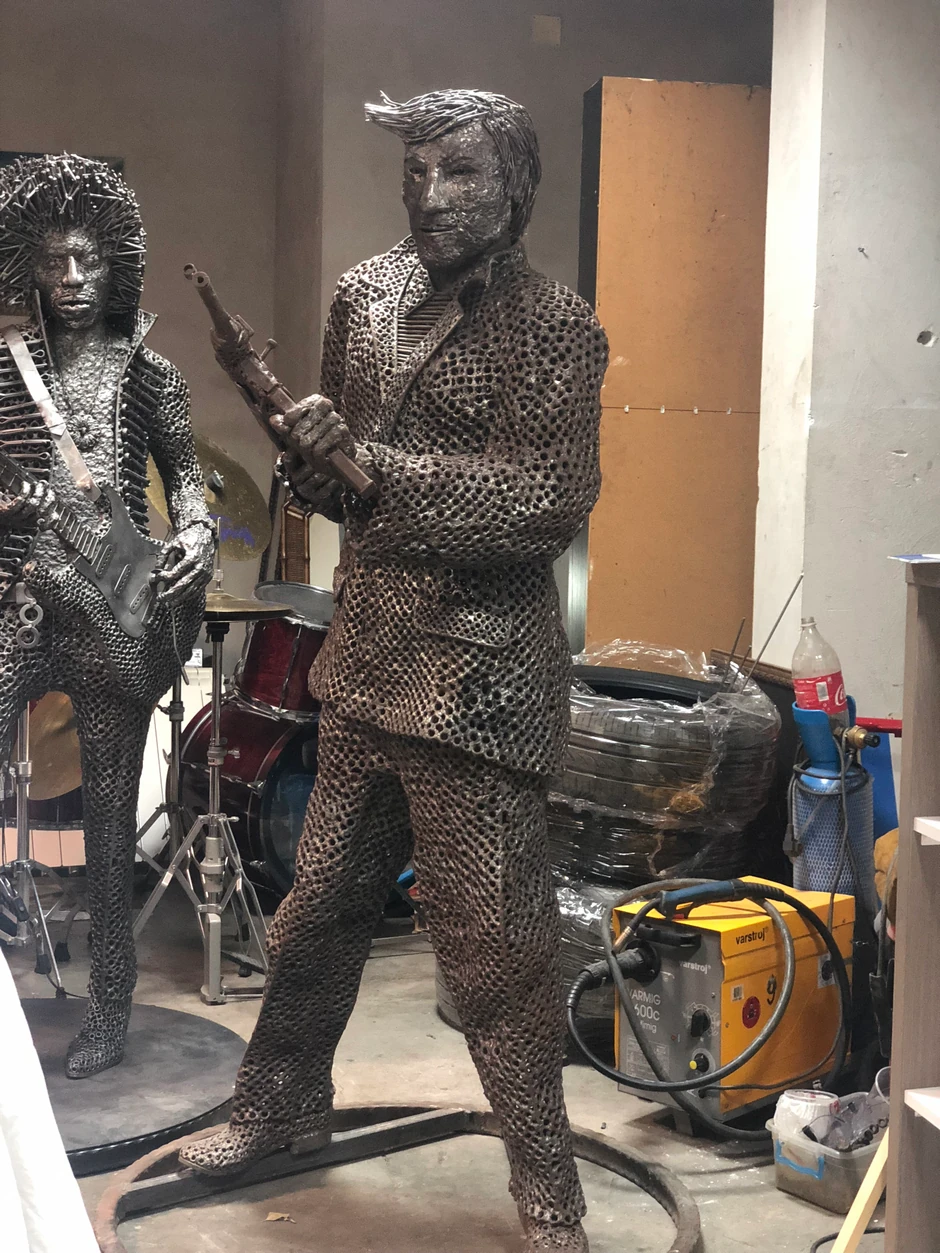 Umetnik Boris Deheljan (37) napravio je impozantnu skulpturu Velimira - Bate Živojinovića od 7.000 šrafova i matica, tešku dve stotine kilograma.