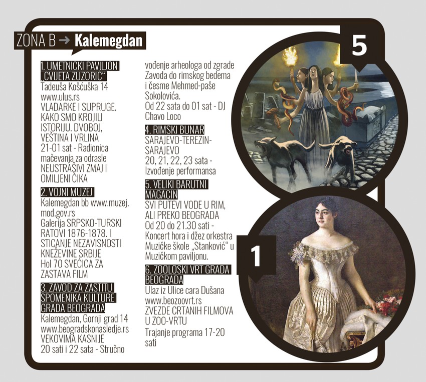 Raskošni Umetnički paviljon "Cvijeta Zuzorić", u Noći muzeja postaće pravi istorijski "Viasat History" paviljon sa inspirativnim pričama srpske istorije dok će muški akt uživo i na zidovima kroz provokativnu izložbu dočekati posetioce Galerije ULUS.