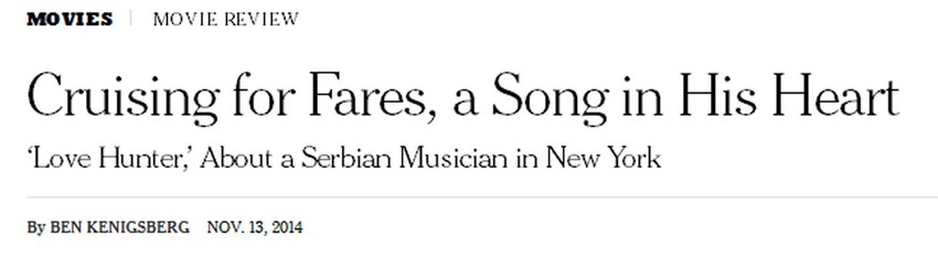 Američki dnevnik „Njujork tajms” objavio je prikaz filma "Lav Hanter" (Love Hunter) pod naslov "Vozi za lovu sa pesmom u srcu" koji govori o njujorškim danima frontmena istoimenog novosadskog benda Milana Mumina. Prenosimo vam šta je kritičar Ben Kenigsberg napisao o filmu.