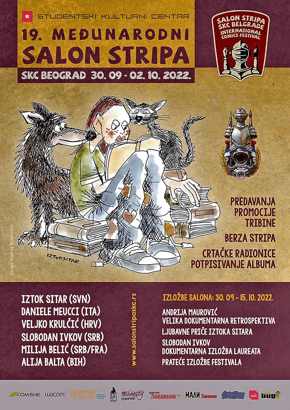 - Najznačajniji segment programa 19. međunarodnog salona stripa 2022. godine svakako je velika dokumentarna retrospektiva Andrije Maurovića u autorskom konceptu i selekciji izložbenih eksponata Veljka Krulčića, uglednog zagrebačkog izdavača i istoričara stripa. Andrija Maurović bio je slikar, ilustrator, crtač stripova i jedna od najmarkantnijih umetničkih figura kako u Hrvatskoj, tako i na jugoslovenskim prostorima. Značaj ove galerijske postavke, uz koju ide i program promocije najnovijih izdanja o Mauroviću, ponajbolje je sadržan u Krulčićevom nazivu izložbe Maurović, Stari Mačak, još jednom (ili - prvi put) u Beogradu? Drugi, veoma značajan segment ovogodišnjeg festivala jeste izložba vodećeg slovenačkog umetnika andergraund, ili preciznije rečeno, autorskog stripa Iztoka Sitara koji je, istini za volju, do sada objavio sedamnaest žanrovski različitih albuma. Ekskluzivnost programa čini i gostovanje italijanskog umetnika Danijela Meučija, autora grafičkog romana “Tesla: Čovek koji je oblikovao budućnost“. Pomenute izložbe, kao i velika dokumentarna retrospektivna izložba Slobodana Ivkova, dobitnika Salonove nagrade za životno delo, i prateće izložbe festivala biće dostupne posetiocima od 30. septembra do 15. oktobra - podvukao je Pješčić.