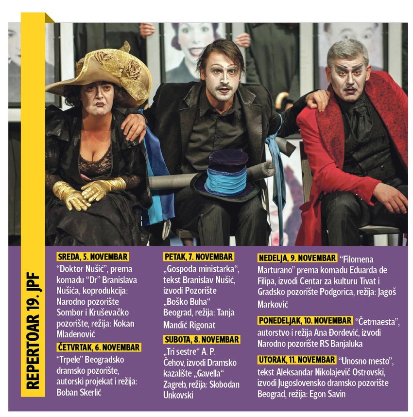 Ovim rečima Bojan Munjin, pozorišni kritičar i novinar iz Zagreba, za “Blic” najavljuje 19. Jugoslovenski pozorišni festival u Užicu, koji će od večeras do 11. novembra okupiti, po Munjinovom izboru, sedam najboljih predstava ovogodišnje produkcije sa prostora bivše države.