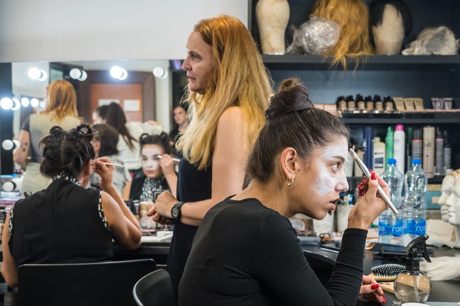 Na fotografijama su ljudi iz različitih sektora, koji, nevidljivi za publiku, učestvuju u stvaranju predstava.