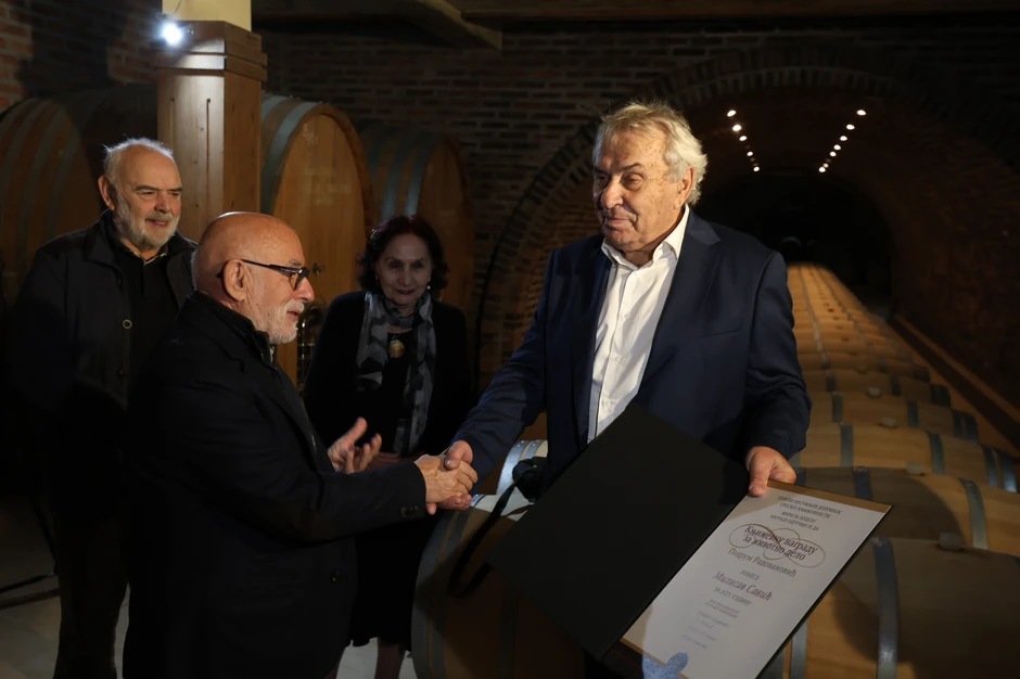 Uručena mu je danas u Krnjevu, a na početku nadahnutog obraćanja zanimljivo se osvrnuo na vino u našoj epskoj poeziji, napominjući da se “najveća pohvala vinu, kao piću ljubavi i prijateljstva, nalazi se u pesmi Banović Strahinja“.
