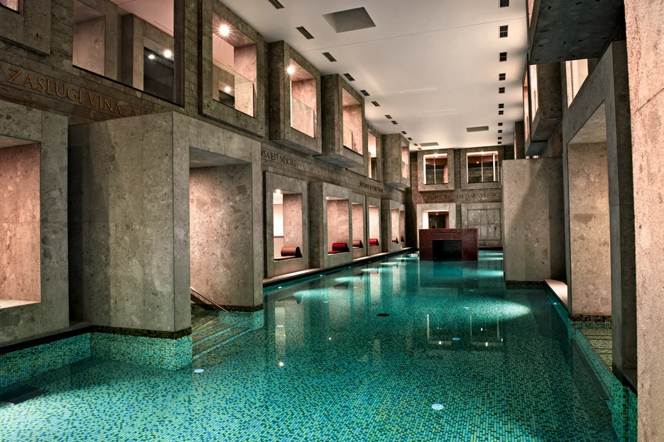 Rimske terme nude zatvoreni i otvoreni panoramski bazen, u kom su se kupači opuštali i tokom naše posete, uprkos niskim temperaturama. Tu su i zatvoreni i otvoreni bazeni sa vodenim sedištima i ležaljkama.