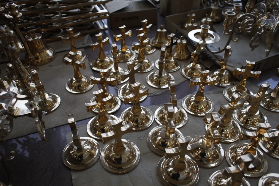 - Ovo je posao koji se voli. Počeli smo sa zvonima, a onda nam je vladika Teodosije iz manastira Dečani doneo polijelej iz 17. veka koji je bio oštećen. Monasi su ga skinuli jer su se plašili napada Albanaca sa Kosova. Mi nismo mogli da ga sastavimo, ali smo uspeli da napravimo kopiju. Tako smo počeli da pravimo i horose, svećnjake i krstove - kaže Nemanja Kremenović.