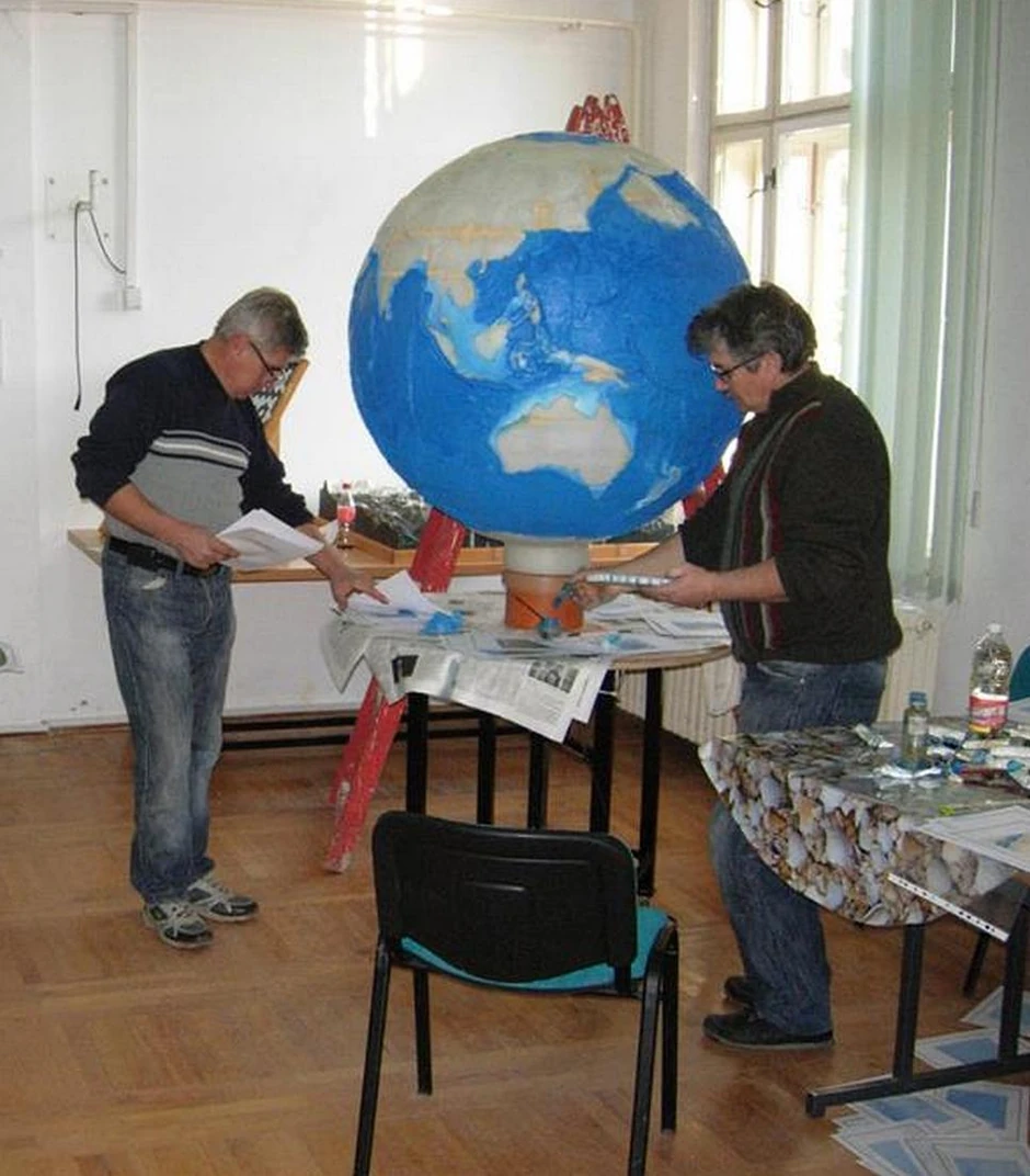 Čudo tehnike je pravljeno pet godina uz pomoć učenika iz bratske škole u Mađarskoj. Profesor Nemet kaže da je najteže bilo sklopiti sistem unutar kugle koja je realna slika Zemlje iz svemira.