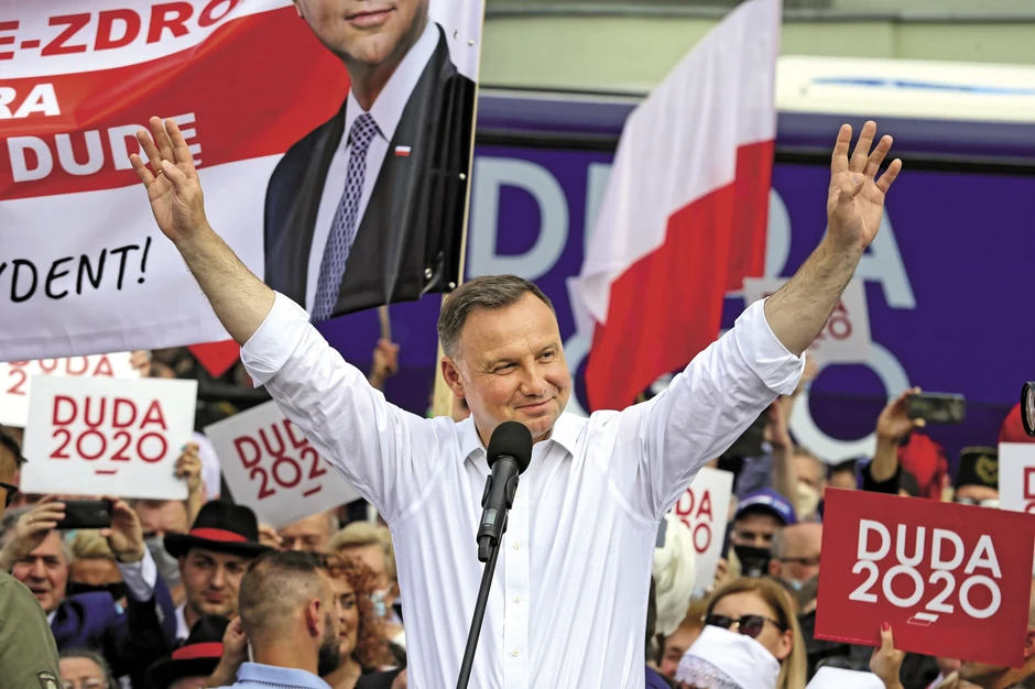 Pritisnuta između Moskve - za koju je vežu tako duboke frustracije da je tema lustracije onih koji su sarađivali sa državnom bezbednošću u doba komunizma još uvek aktuelna (Kačinjski je više puta preteći zahtevao da se sami prijave) - i Brisela, u kome glavnu reč ima Berlin, poljska aktuelna vlast se odlučila da izabere Vašington. Duda je upravo pred izbore posetio Donalda Trampa i tako postao prvi strani zvaničnik koji je došao po izbijanju epidemije virusa korona. Uz to je dobio i potvrdu prethodnih obećanja da će američke snage koje se budu povlačile iz Nemačke biti raspoređene na poljskoj teritoriji. To su formalno pripadnici NATO-a, zbog čega su već stigla upozorenja iz Nemačke i drugih članica, a nezadovoljna je i Moskva. Tramp na sve to nije odgovorio, ali je pružio punu podršku Dudi i poželeo mu pobedu na izborima. Nije propustio da primeti da dve zemlje dele „iste kulturne vrednosti“, u čemu je poljska opozicija pročitala podršku za odnos prema LGBT populaciji.
