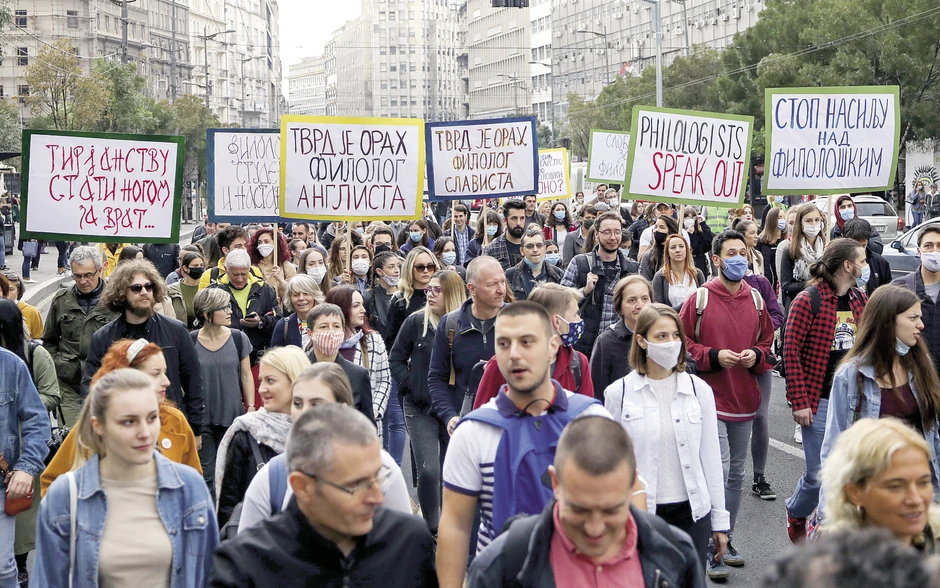 Otuda se veliki deo zaposlenih bio odlučio na protest koji se održao u utorak 29. septembra. Šetnjom od Platoa ispred Filozofskog fakulteta do Ministarstva prosvete u Nemanjinoj, skrenuli su pažnju na dva glavna zahteva – da se izbor dekana dovrši po važećim propisima i da Mladen Šarčević razreši Ljiljanu Marković funkcije specijalne savetnice, ako je uopšte obavlja. Napominju da su spremni na drastičnije korake ukoliko reakcija iz Nemanjine izostane.