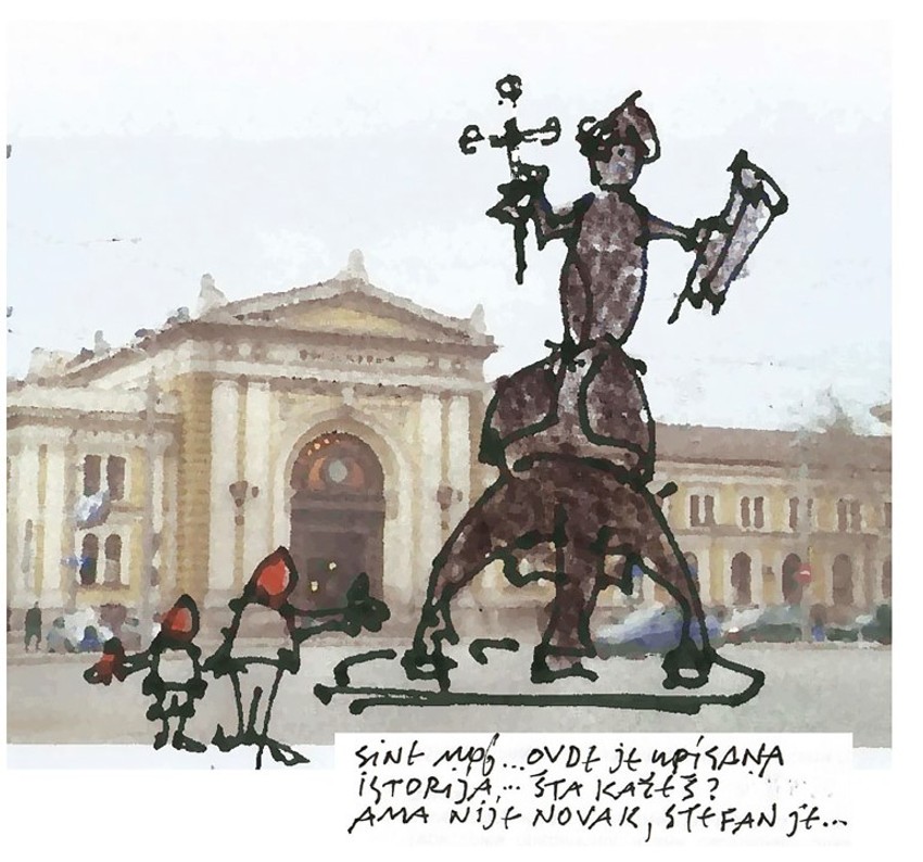 Ali ima vlast i još neku korist od svega toga, prezentacijom značajne ličnosti iz prošlosti na način kako je učinjeno, moguće je skloniti od javnosti neki aktuelni problem, pa spomenici niču na sve strane po gradu. Vlast po svojoj volji odabira ličnost kojoj će se spomenik podići, imenuje umetnika koji će to izraziti, javni novac je njihova tajna i sve se završava neprimerenim gestom kao što je iz daleka donet kip Stefana Nemanje.