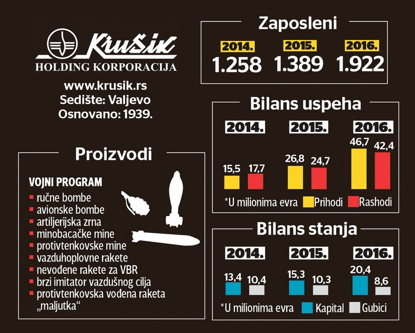 Po onoj narodnoj - kako seješ, tako ćeš i žnjeti, uprava fabrike naoružanja Krušik iz Valjeva i država kao njen vlasnik na kraju prošle godine mogli su da uberu samo - gubitke. Minus je, prema zvaničnim podacima iz finansijskog izveštaja Holding korporacije Krušik u 2020. dostigao 577,35 miliona dinara. Tako su se obistinila strahovanja svih koji su ukazivali da bi pogrešni poslovni potezi koji se vuku godinama unazad, a u koje spadaju i loši, za državnu fabriku štetni ugovori sa privatnim trgovcima oružjem, mogli skupo koštati holding iz Valjeva. Iz bilansa uspeha i bilansa stanja jasno se vidi i da je ta cena u vidu neto gubitka samo u prošloj godini bila skoro pet miliona evra, za 310.000 evra veća od neraspoređene neto dobiti iz svih ranijih godina.