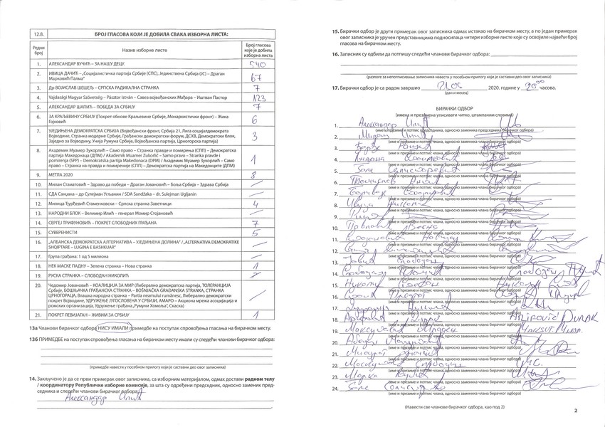 Kad Koštana igra čardaš: Vrhunac apsurda, faksimil zapisnika sa jednog od biračkih mesta u Vranju, gde je na parlamentarnim izborima SVM osvojio treće mesto
