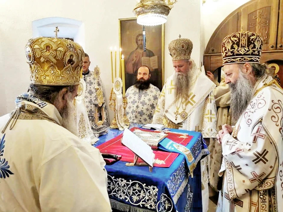 Кako bi se uvažila i tradicija, važna za Crkvu, ritual je izvršen i u Cetinjskom manastiru, modernizovan načinom pristizanja učesnika. Patrijarh Porfirije i sam mitropolit Joanikije sleteli su na obližnju poljanu helikopterom, čuvani i balističkim štitom. Opštenarodnog sabora, najavljenog i priželjkivanog od određenih krugova, nije bilo, ne samo što je to bio jedini način da se izbegnu "međuetnički sukobi", već i jer je manastir posvećen rođenju Presvete Bogorodice za to premali. Za dostojanstvo obreda ipak su, i formalno i defakto, dovoljni prisutni na arhijerejskoj liturgiji. I tu nisu potrebni nikakvi „kulturno-umetnički programi“, obično upriličavani u ovim, u srži – duhovnim prilikama.