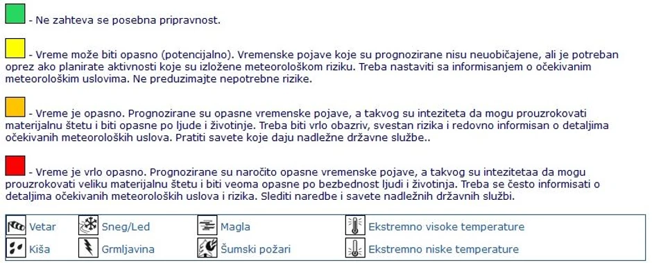 Narandžasto upozorenje podrazumeva da se očekuje potencijalno opasno vreme. Tada se građanima savetuje da prate vremenske prognoze i obaveštenja, a sve relevantne institucije prate situaciju i pružaju pravovremene informacije.