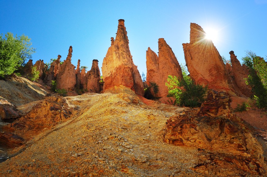 Prema legendi, ovaj vrlo redak u svetu spomenik prirode, nastao je u sukobu đavola i jedne dobre vile. Vila se, da bi sprečila venčanje omađijanih brata i sestre „đavoljom vodom“, molila bogu, koji joj je uslišio molitvu pretvorivši mladence i čitavu svadbenu povorku u kamen. Zaista je šteta ne obići ove čudesne kamene piramide neobičnih boja.