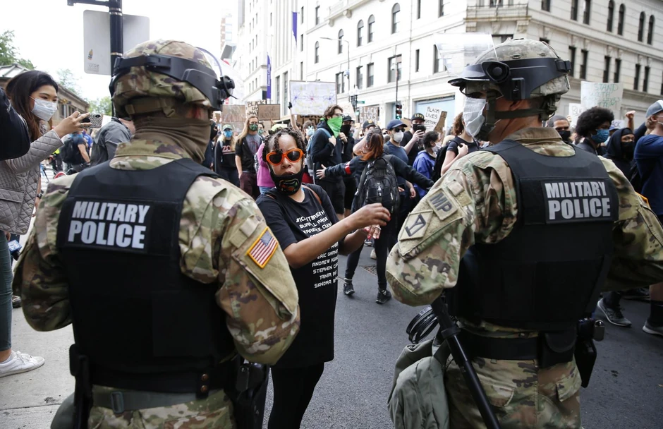 Suočen sa masovnim, uglavnom mirnim protestima, njegov prvi instinkt bio je da se poziva na Zakon o pobuni i aktivira vojsku. Ovog leta u Vašingtonu, gde je nadležna federalna policija, trupe raspoređene da proteraju mirne demonstrante sa trga Lafajet. Kao odgovor na marševe Black Lives Matter, Trampove pristalice upozorile su na pobunu, vanredno stanje i pokušaje puča, a naoružani ekstremisti poput Boogalooa i Ponosnih dečaka izašli su na ulice. Na prvoj predsedničkoj debati, Tramp je, podstaknut da odbaci takve grupe, umesto toga naložio da „ostanu iza i uz njih“.