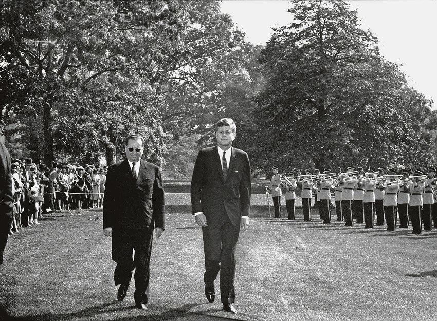 Dolazak predsednika Tita u Belu kuću i susret s predsednikom Kenedijem - dva predsednika vrše smotru gardijske jedinice, Vašington, 17. 10. 1963.