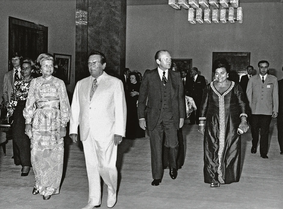 Poseta predsednika Forda Beogradu: dolazak na svečanu večeru u čast predsednika Forda i supruge u zgradi SIV-a, 3. 8. 1975.