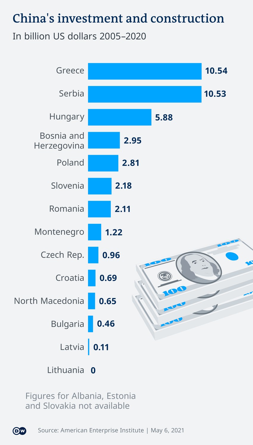 Podseća se da Kinezi investiraju u luke u Trstu i Pireju, kao i izgradnju brze pruge Beograd-Budimpešta. Godinama se održavaju samiti 17+1 čiji je cilj „unapređenje ekonomskih odnosa sa državama predvorja EU, kao i mekog istočnog krila EU“. Navode se reči predsednika Srbije Aleksandra Vučića da Kina „uvek sa poštovanjem“ tretira partnere, piše Dojče Vele.