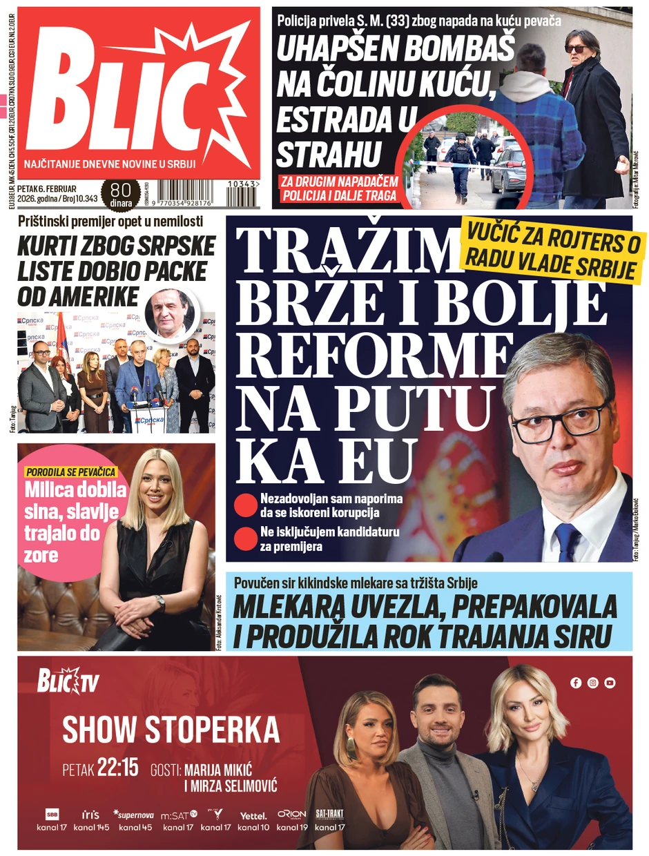 Naslovna Print Naslovna strana za 6.2. Naslovna strana za 6.2. 6. februar 2026. 00:30 0 Foto: Ringier Blic naslovna strana za 6.2. Blic Slušaj vest 0:00/ 0:00 Naslovna strana za 6.2. Foto: Ringier +2 Galerija Blic naslovna strana za 6.2. Blic naslovna strana za 6.2. (Foto: Ringier) Blic naslovna strana za 6.2. (Foto: Ringier)