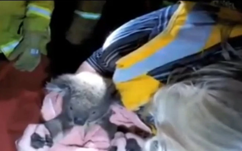 Koala je sa povredama bila zaglavljena na drvetu, a vatrogasci su je, pošto je izgubila svest i pala, dočekali ćebetom. Međutim, mališan više nije disao.