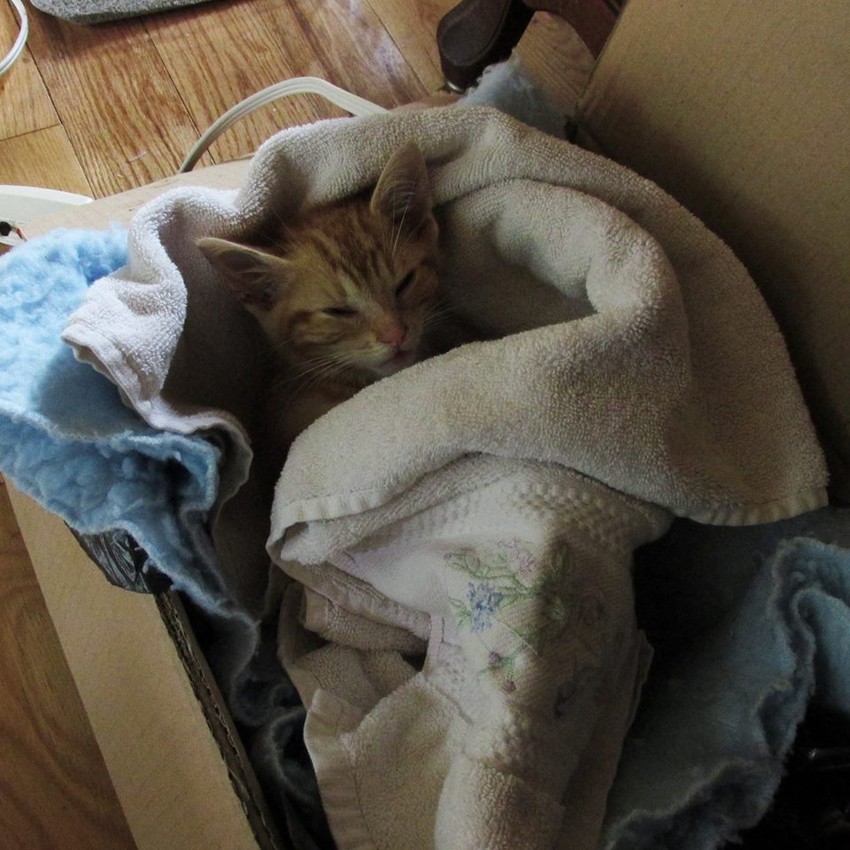 Bila je toliko mala da nije mogla da jede čvrstu hranu. Hranjenje sa pimpetom je bio jedini način. Prema rečima njenog spasitelja volela je da se umota u ćebe gde je tako ušuškana znala da prespava ceo dan.