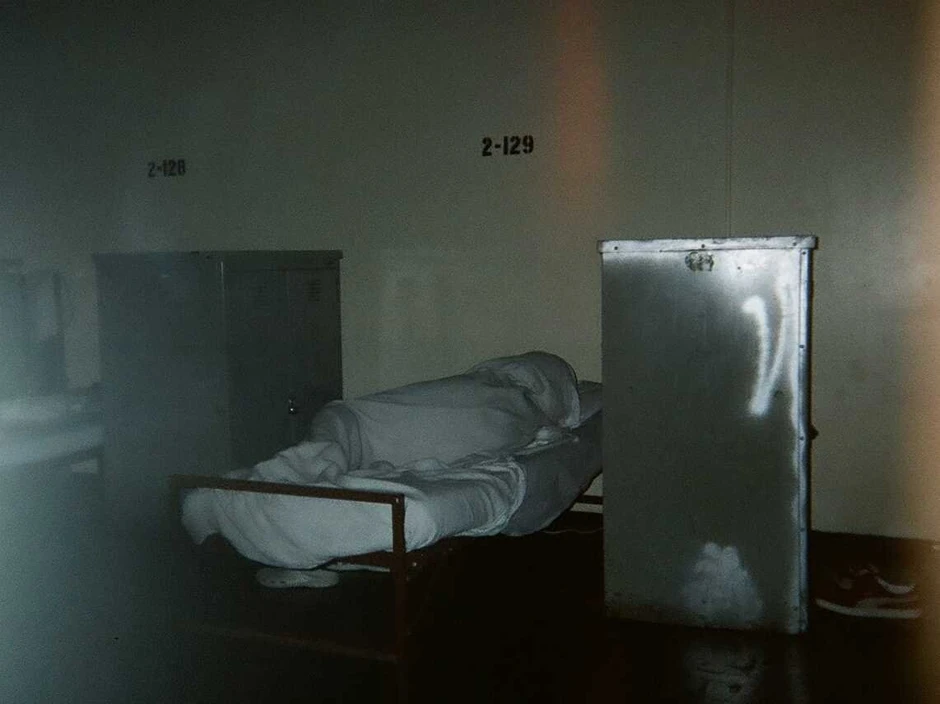 “Ovo je prihvatilište u Bruklinu u kom sam proveo poslednjih dvadeset dana. Ovako su svratišta uređena – dobijete krevet i ormarić. Četiri godine sam spavao na ulici, osim zime, kada bih spavao u “Baueriju”. Odlučio sam da počnem da spavam u svratištima zato što na ulici nisam uspevao da zaspim. Kada ne spavate, osećate kako počinjete da gubite razum.” – Klivlend Gibs