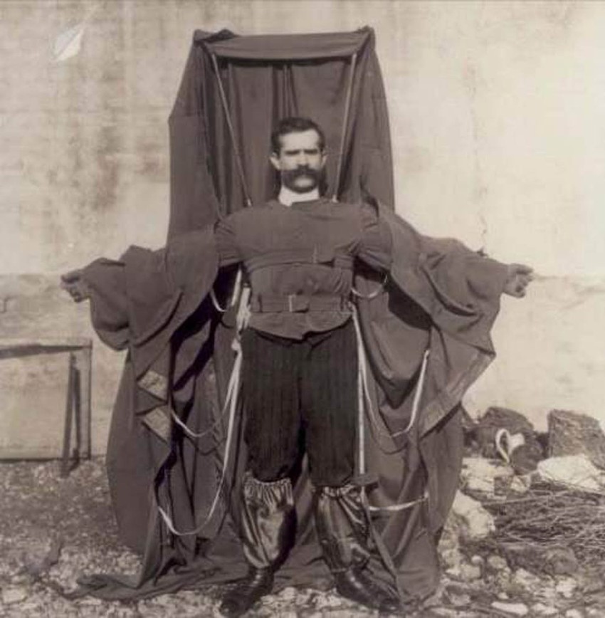 Franc Ričelt, poreklom iz Austrije, je početkom 20. veka došao na ideju da napravi odelo za "superheroja", odnosno odelo za pilote koje bi im, u slučaju opasnosti, poslužilo kao padobran.