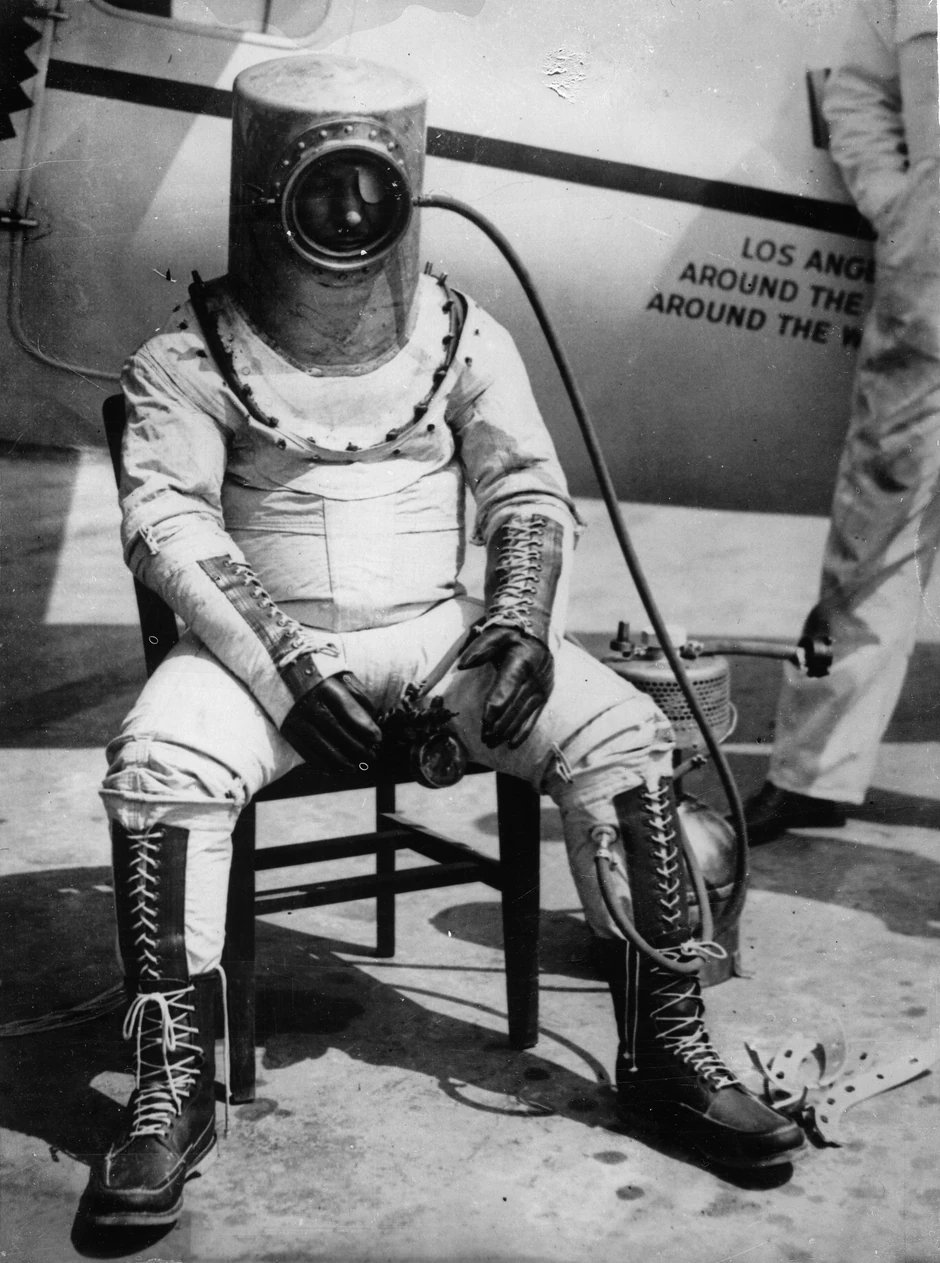 Pošto je osvojio daljine, Post je želeo da osvoji i nove visine. Da bi preživeo na rekordnim visinama koje je želeo da dostigne, u saradnji sa kompanijom “Gudrič” razvija prvi skafander pod pritiskom na svetu, čudnovato odelo od gumirane tkanine sa metalnom ronilačkom kacigom.