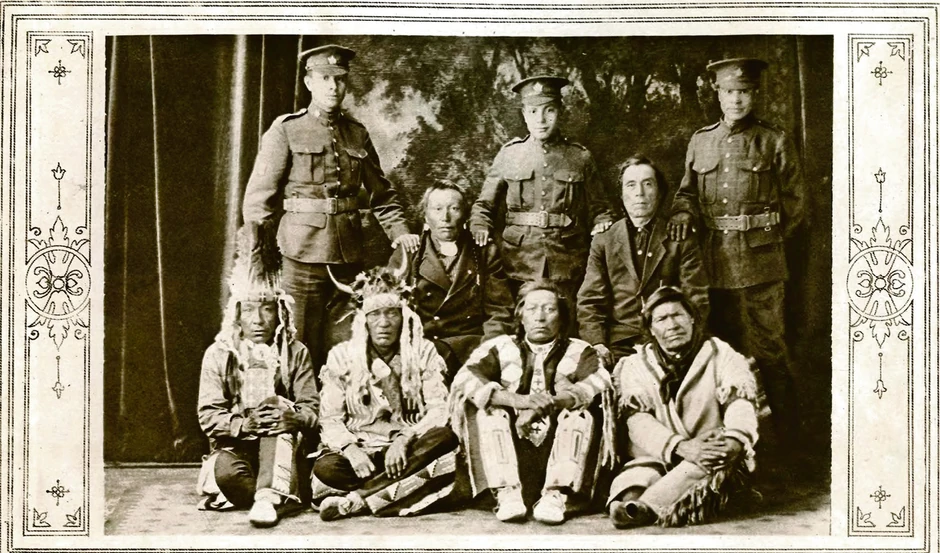 Kada je kanadska vlada, na poziv Velike Britanije da se uključi u rat, odlučila da pošalje svoje trupe, mnogima koji nisu bili belci rečeno je "da se ne prijavljuju, ovo je rat za nas belce", pa je tako tek 1915. dopuštena i domorodačka jedinica. Nju je činilo 3.500 upravo Kri indijanaca, koji su poslati na evropski front, ali tek nakon što su ih ispratili njihovi preci. Tako su i nastale porodične fotografije na kojima se vidi kako su, svako u svojoj uniformi, okupljene i stare poglavice, tada već deke, i mladi Indijanci u modernim uniformama. Prethodne generacije ispraćale su nove u rat, a oni mlađi bi uzimali zavet da pretke ne obrukaju.