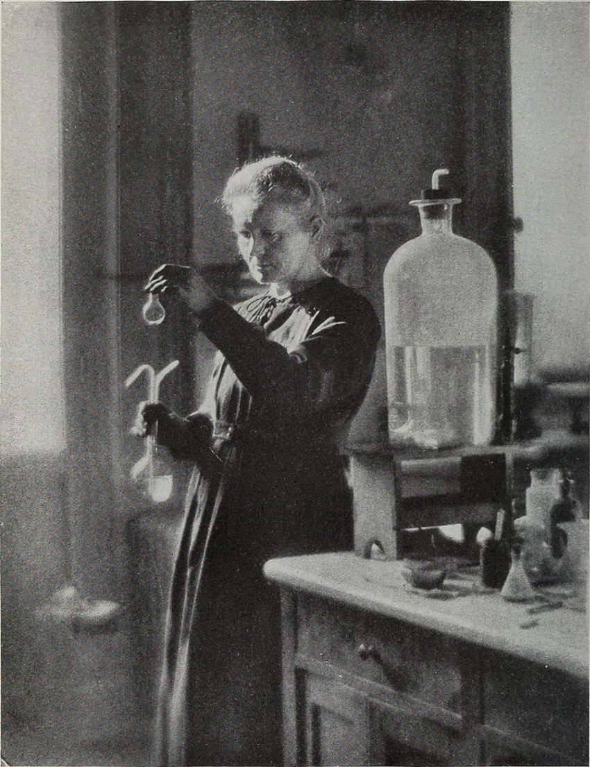 Kao 24-godišnjakinja napustila je rodnu zemlju i upisala se na Sorbonu. Od oko 1.825 studenata Fakulteta za prirodne nauke samo 32 su bile žene. Godine 1897. posvećuje se proučavanju radioaktivnosti.